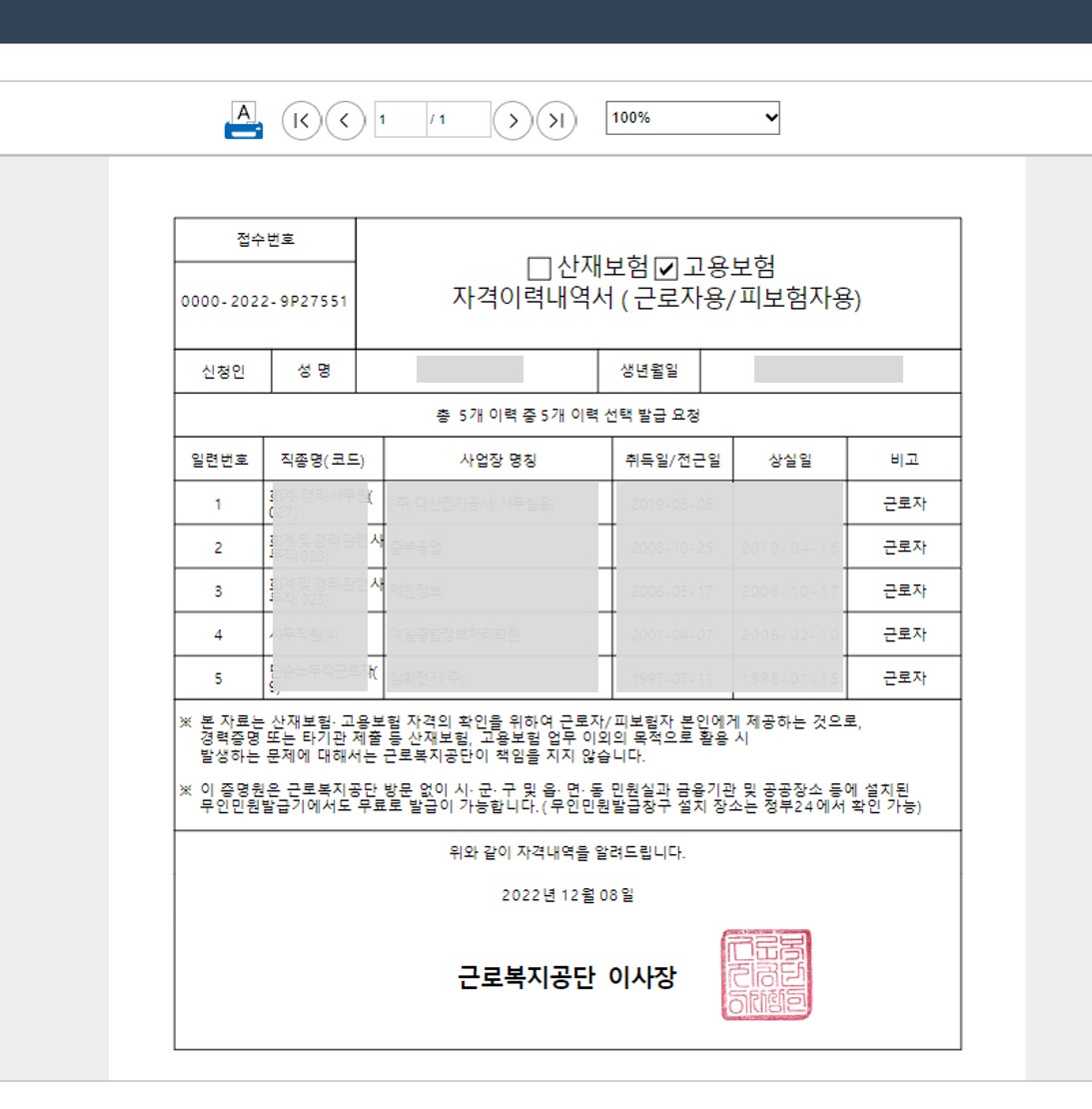 근로복지공단에서 본인이 직접 가입내역서를 발급받을수 있습니다. 고용.산재보험 토탈서비스에서 간단하게 출력할수 있는 방법을 안내합니다.