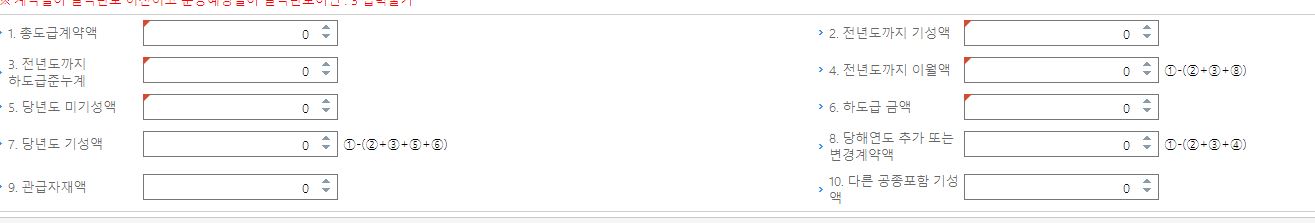 총도급계약액에 올해 공사건에 대한 계약금액을 천원단위로 입력합니다.