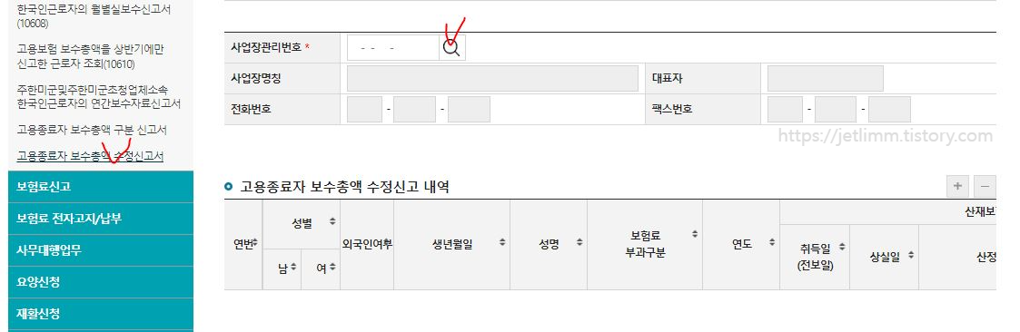 퇴사자 상실 신고후 보수총액 기입을 잘못하였음을 확인하고 보수총액 신고를 하기 위해 수정신고를 진행합니다.