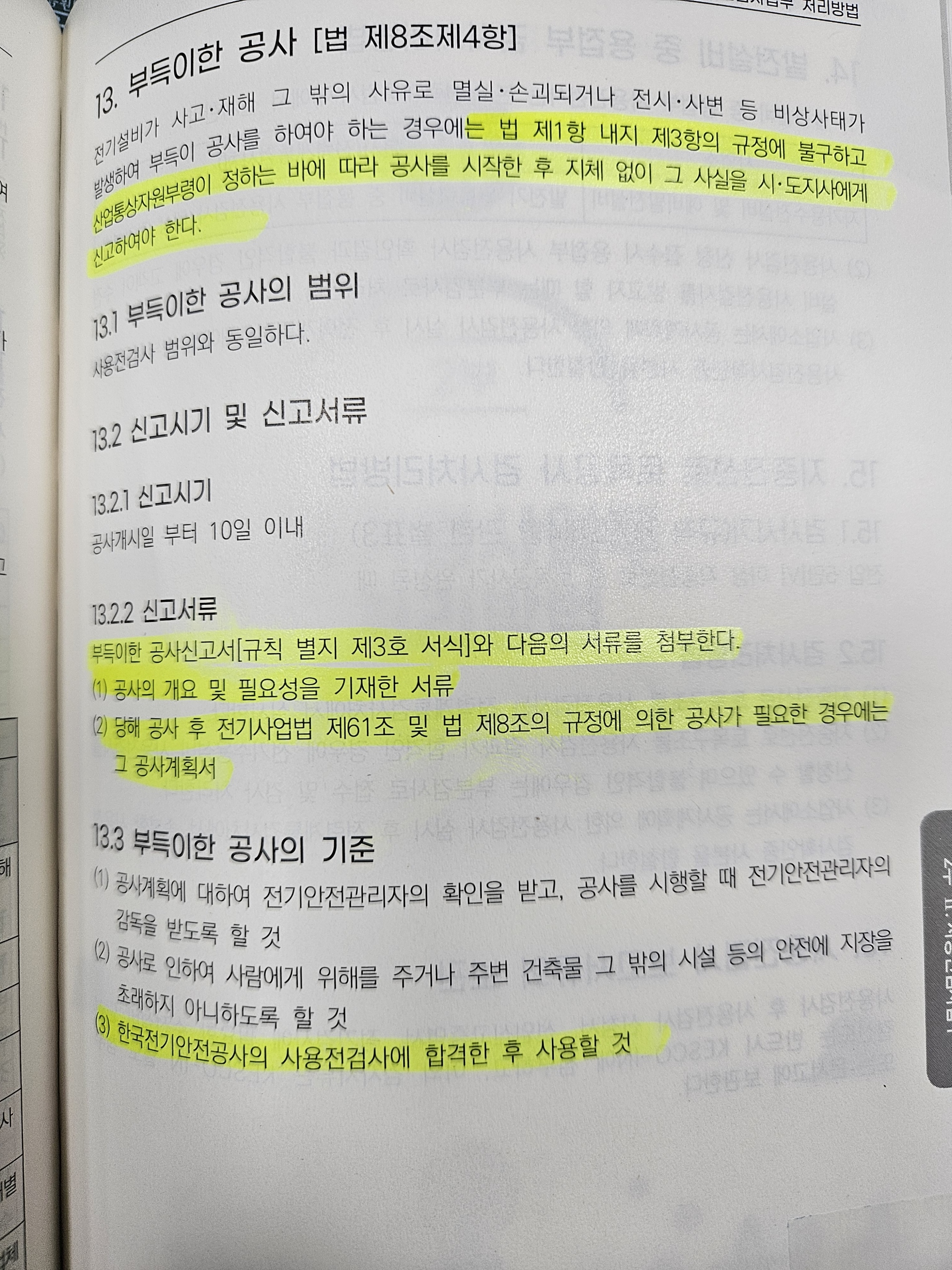 전기설비 교체를 해야하는 경우 공사계획신고서 접수, 공사 일정잡기, 공사일에 작업, 안전공사 사용전검사 실시, 전기 투입 이러한 과정을 거쳐 진행이 됩니다. 그러나 긴급하게 공사를 해야할 경우 이 과정대로 진행하기엔 시간이 너무 오래걸리기에 공사를 진행하면서 시.도지사에게 신고하면 된다고 합니다.