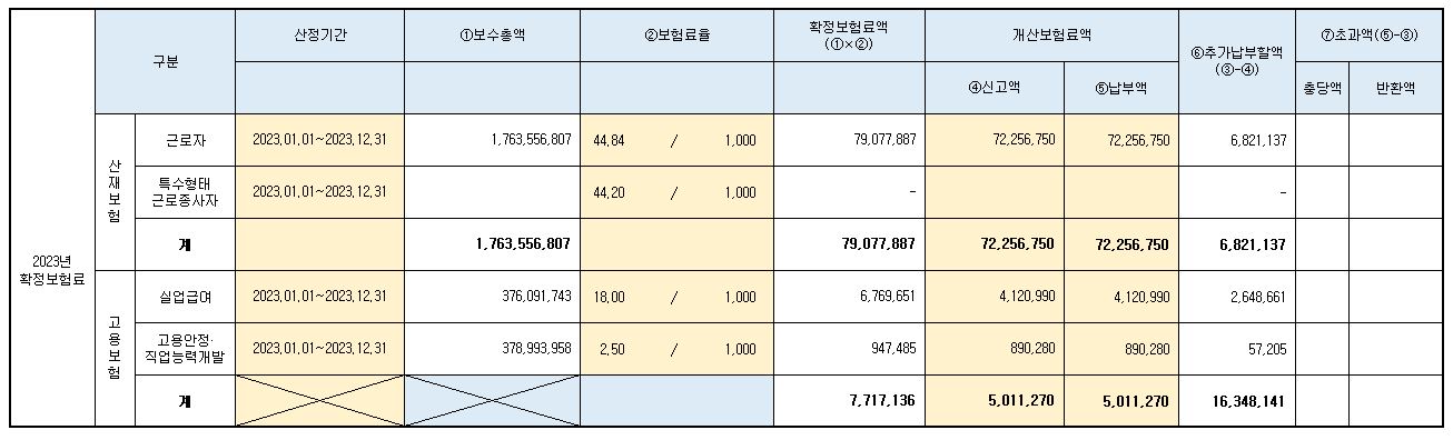 정리된 자료를 가지고 확정보험료 작성을 하는데요.