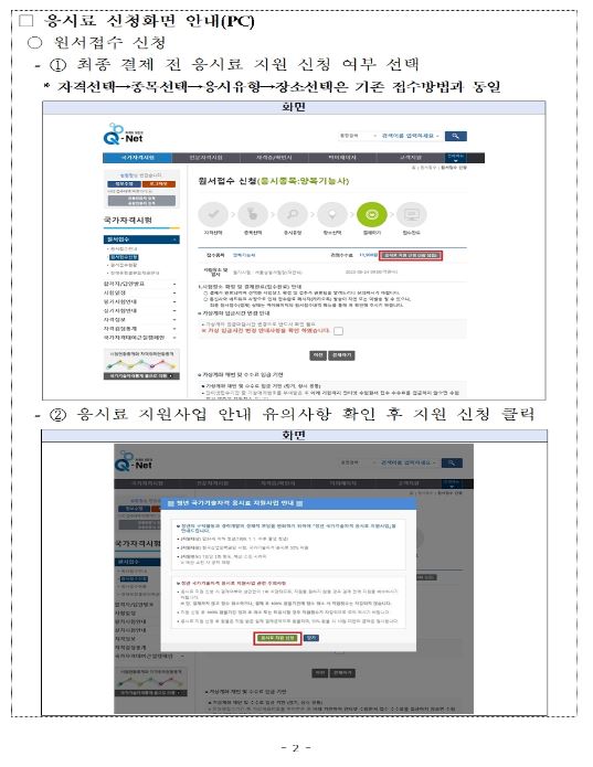 한국산업인력관리공단 Q-NET 홈페이지에서 원서접수시 응시료 지원 선택