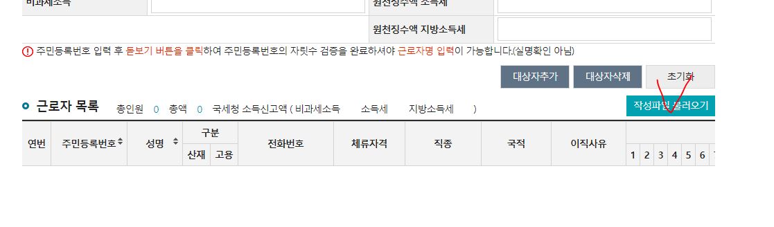 아래 근로자정보를 입력합니다.