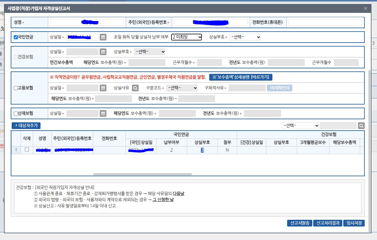 건강보험과 국민연금이 상실처리 절차가 다르네요.