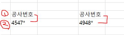 ② 조건 입력한거 블록(공사번호, 아래 2줄 같이)