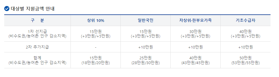 1인당 15~55만원, 소득별 맞춤형 지원 및 단계적 지급