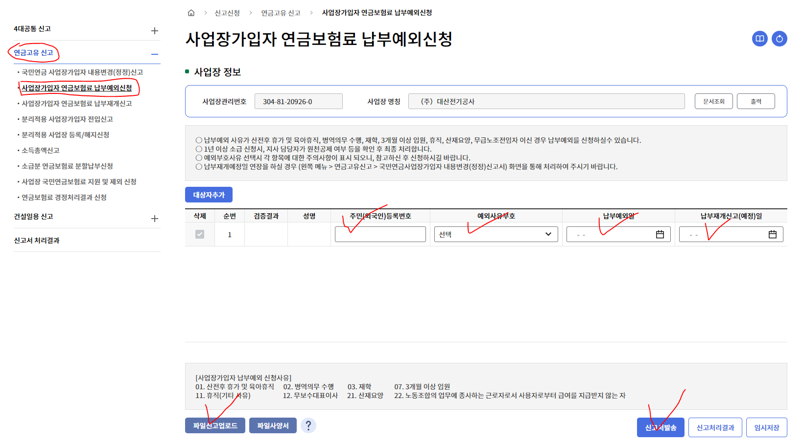 국민연금edi 홈페이지 접속 - 연금고유신고 - 대상자 입력 후- 관련서류 첨부 후 신고서 발송