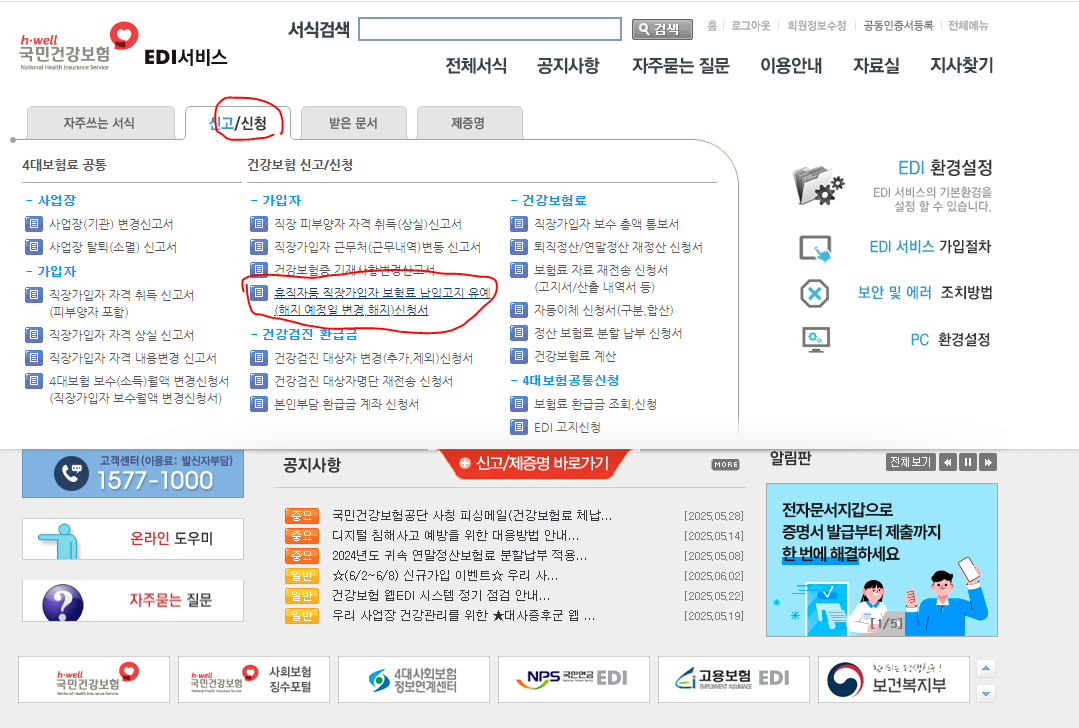 - 신청서류: 휴직 확인서류 (무급 여부 명시), 건강보험료 납부 유예 신청서